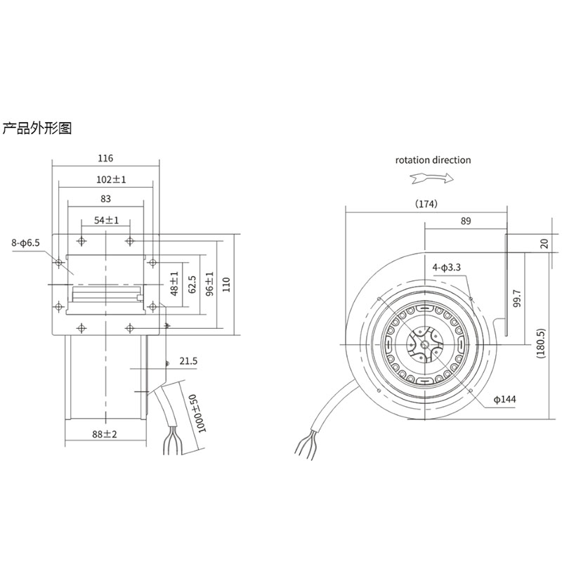 • YWF.F2S-133-073AX0A全新133系列前倾离心风机不锈钢厨