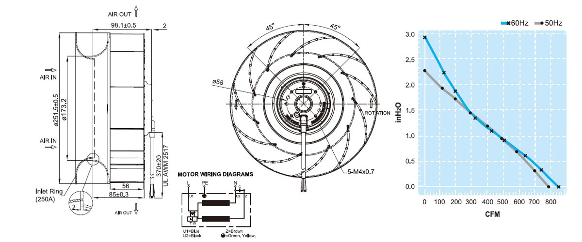 UF250APA11H1C2A离心风扇台湾福佑伺服电机散热风扇充电桩外转子
