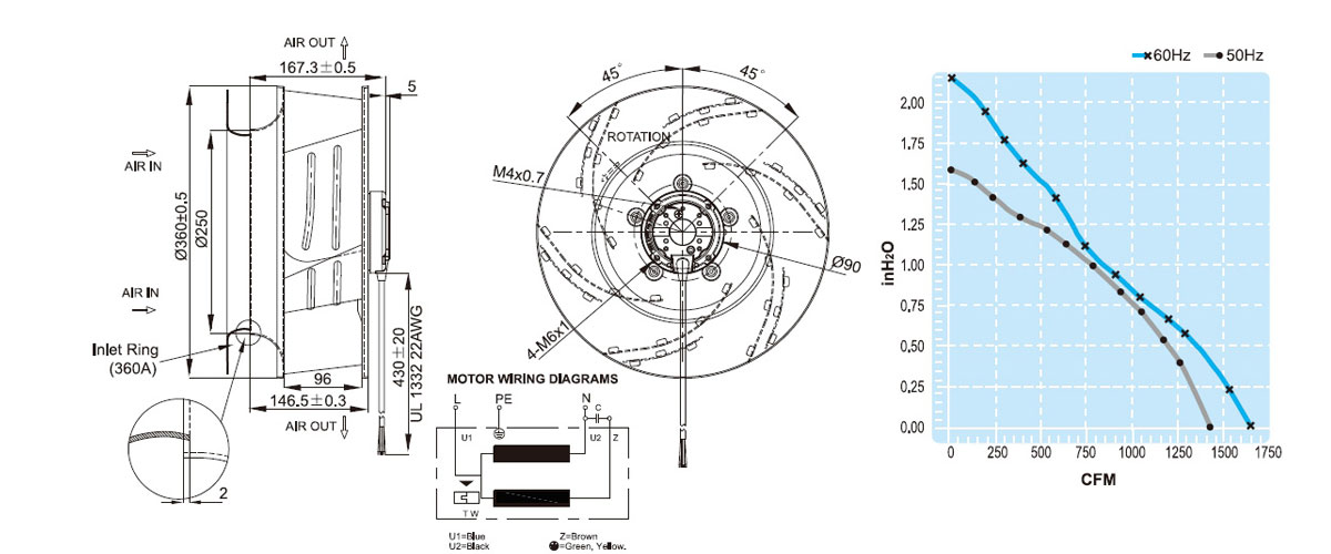UF360AAA11H1C4A原装台湾进口福佑离心风机电子设备屋顶吸力散热